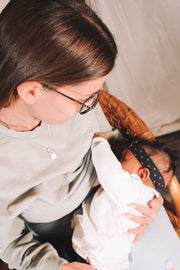 Je m'appelle Audrey, fondatrice de cette entreprise dédiée à la création de bijoux personnalisés à partir de la première goutte de lait maternel de votre bébé.